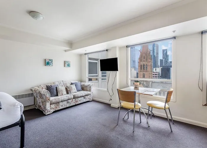 El City Center Apartment With A View Melburne, situado en el centro de Melburne, se encuentra a 5 minutos a pie de la Catedral de San Pablo de Melbourne.